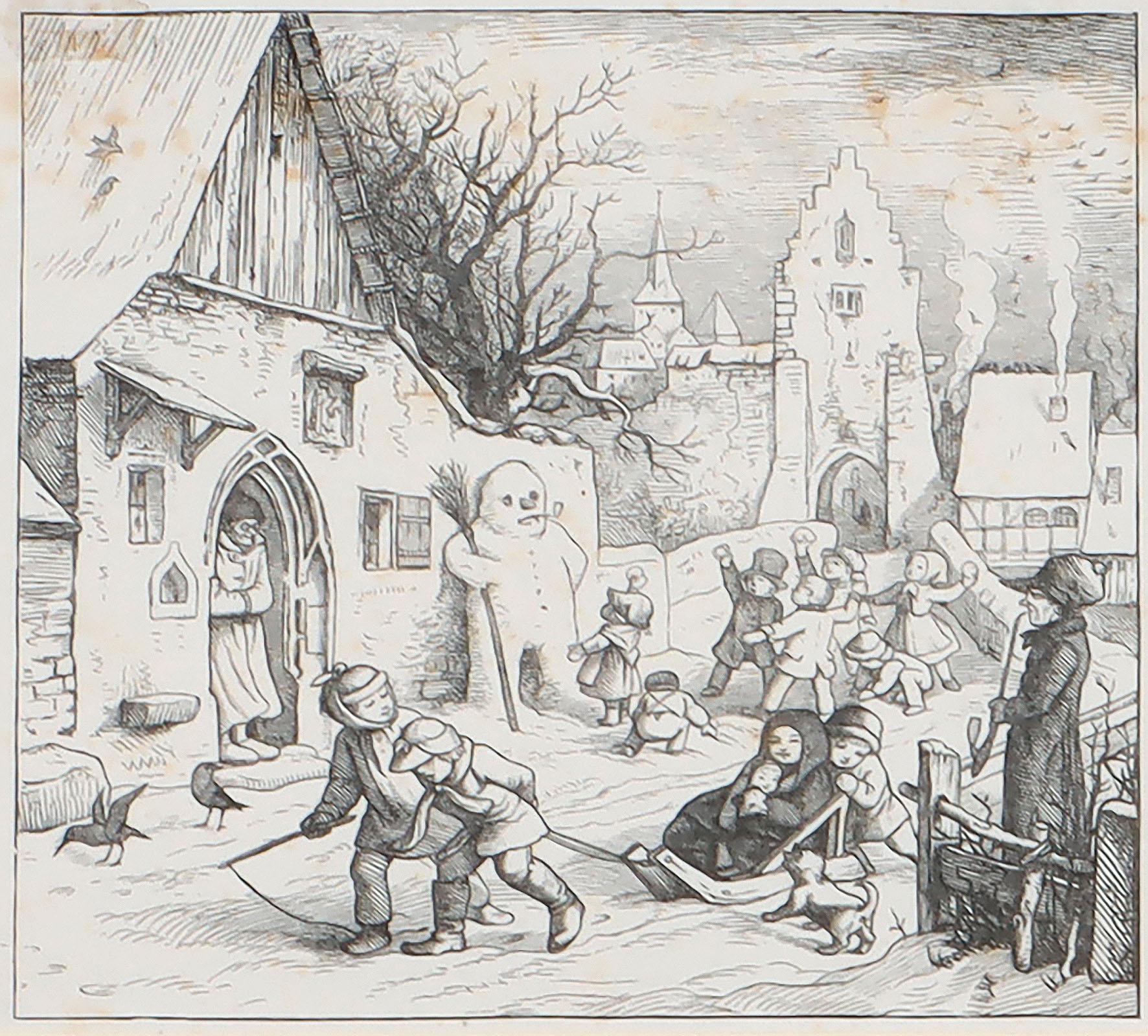 Der Winter ist ein rechter Mann (Für’s Haus: Im Winter) – Die heilige Dreieinigkeit – Die Flucht nach Ägypten (Knecht Ruprecht… Eine Weihnachtszeitung). 3 Bll. Holzstiche von Becker, Gaber bzw. Krüger nach Richter, teils zu versch. Veröffentlichungen 1848 – um 1858.