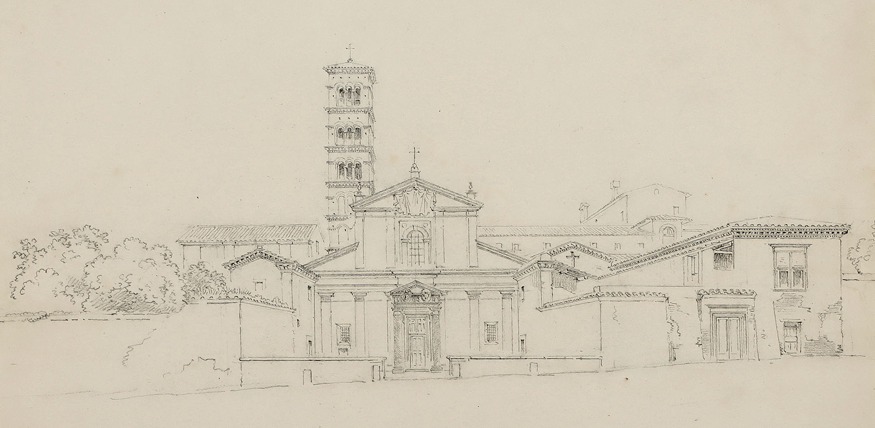 Ansicht der Kirche Santa Pudenziana in Rom, der wohl ältesten römischen Kirche. Bleistiftzeichnung 1823.