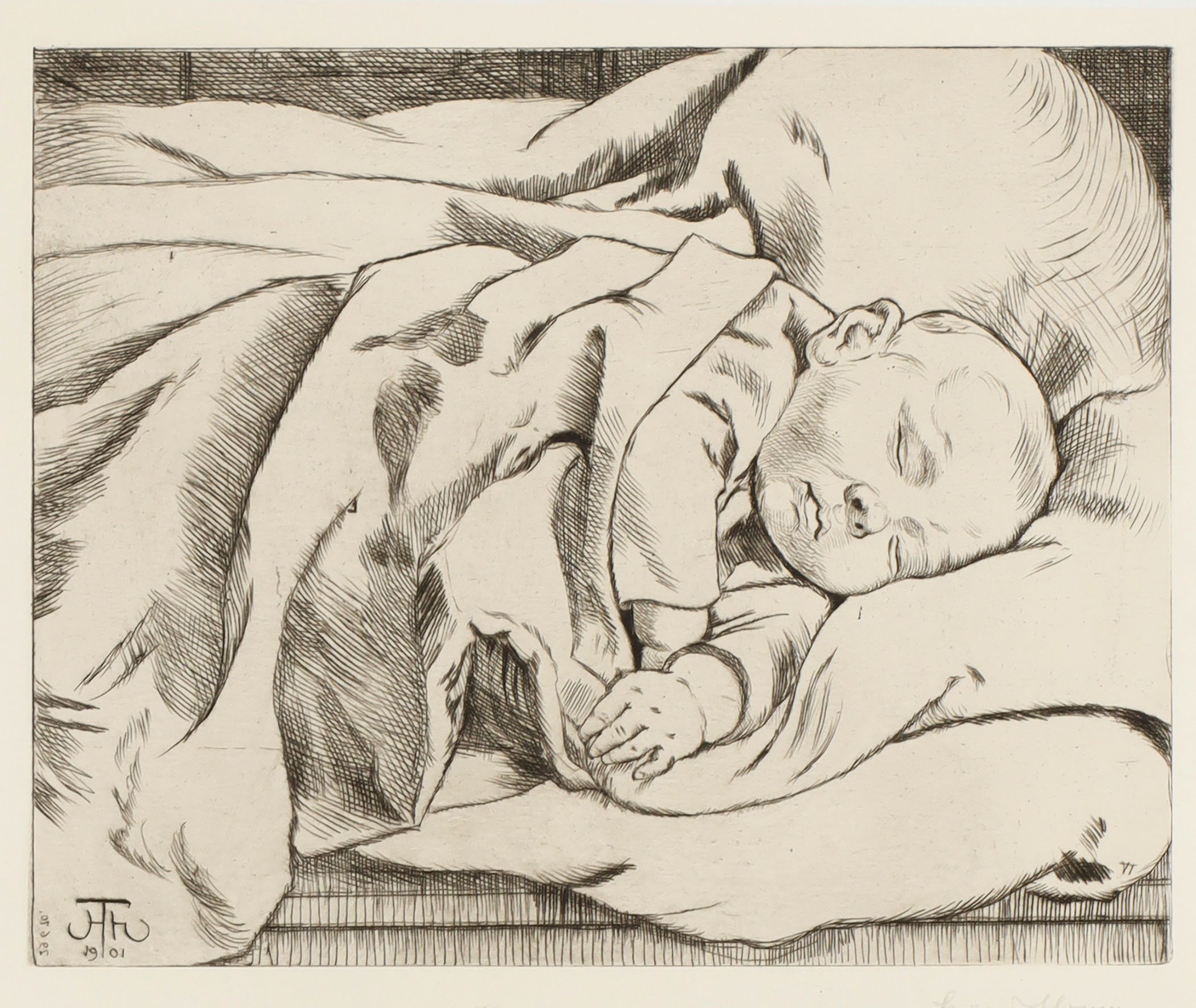 Sonnenblumenmädchen – Schlafendes Kind – Kind mit Ziege – Osterhase. Konvolut von 4 Bll. Radierungen (meist mit Plattenton) 1897-1913.