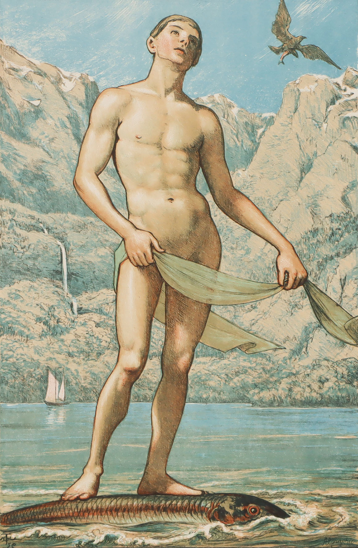 Signiert. Auf chamoisfarbenem Vélin mit perforiertem Oberrand. 33,5 x 24,8 cm. Leicht gebräunt. [bg]
