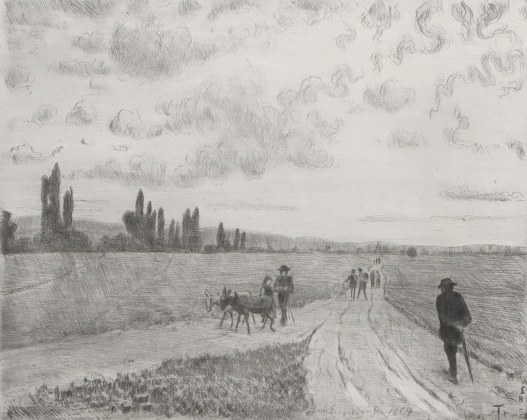 Karlsruher Landschaft II – Seifriedsberg (Landschaft mit Gewitter). 2 Bll. Radierungen mit Plattenton 1915/17.