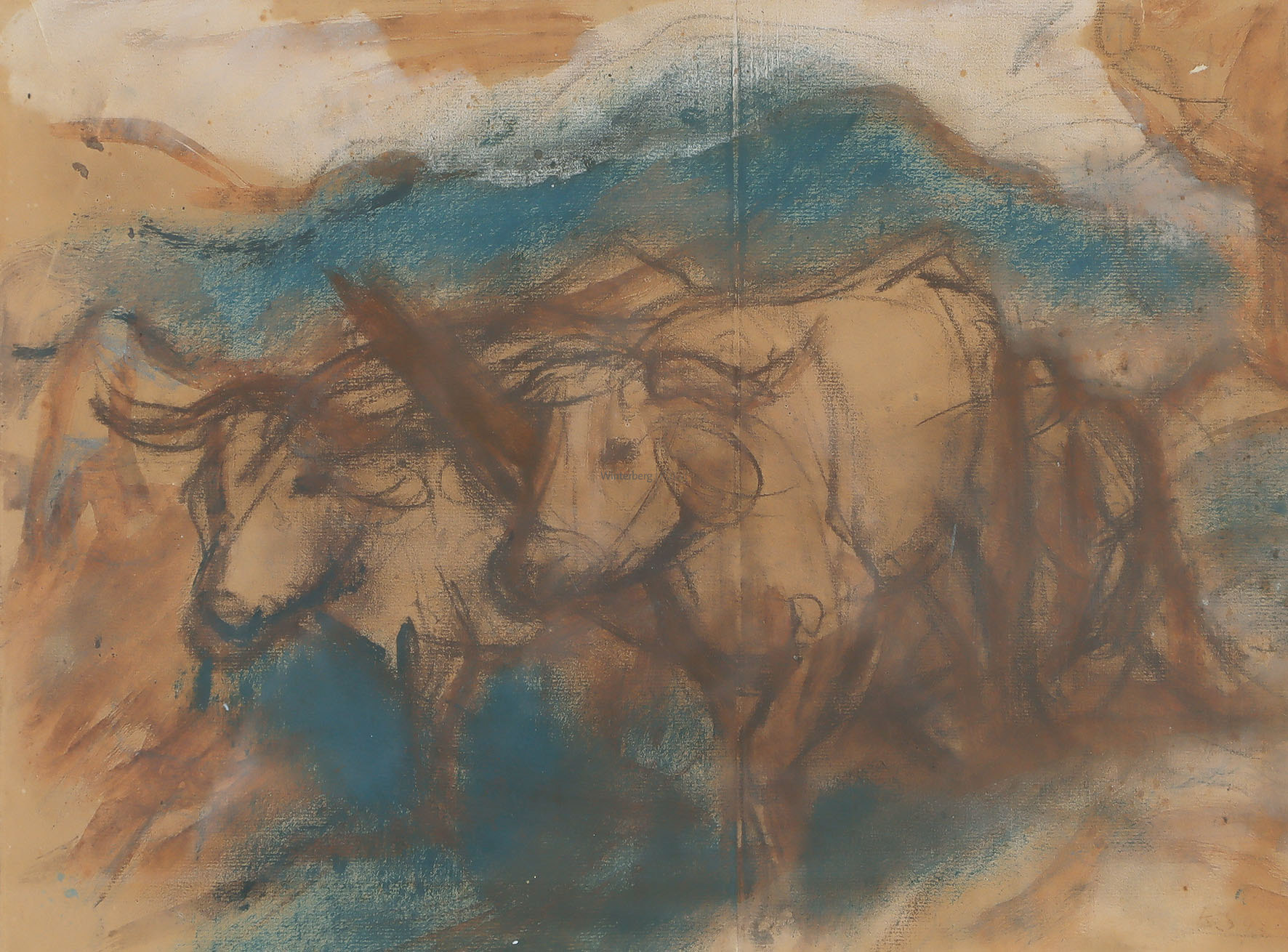Ochsengespann. Mischtechnik mit Aquarell und Pastell 1943.