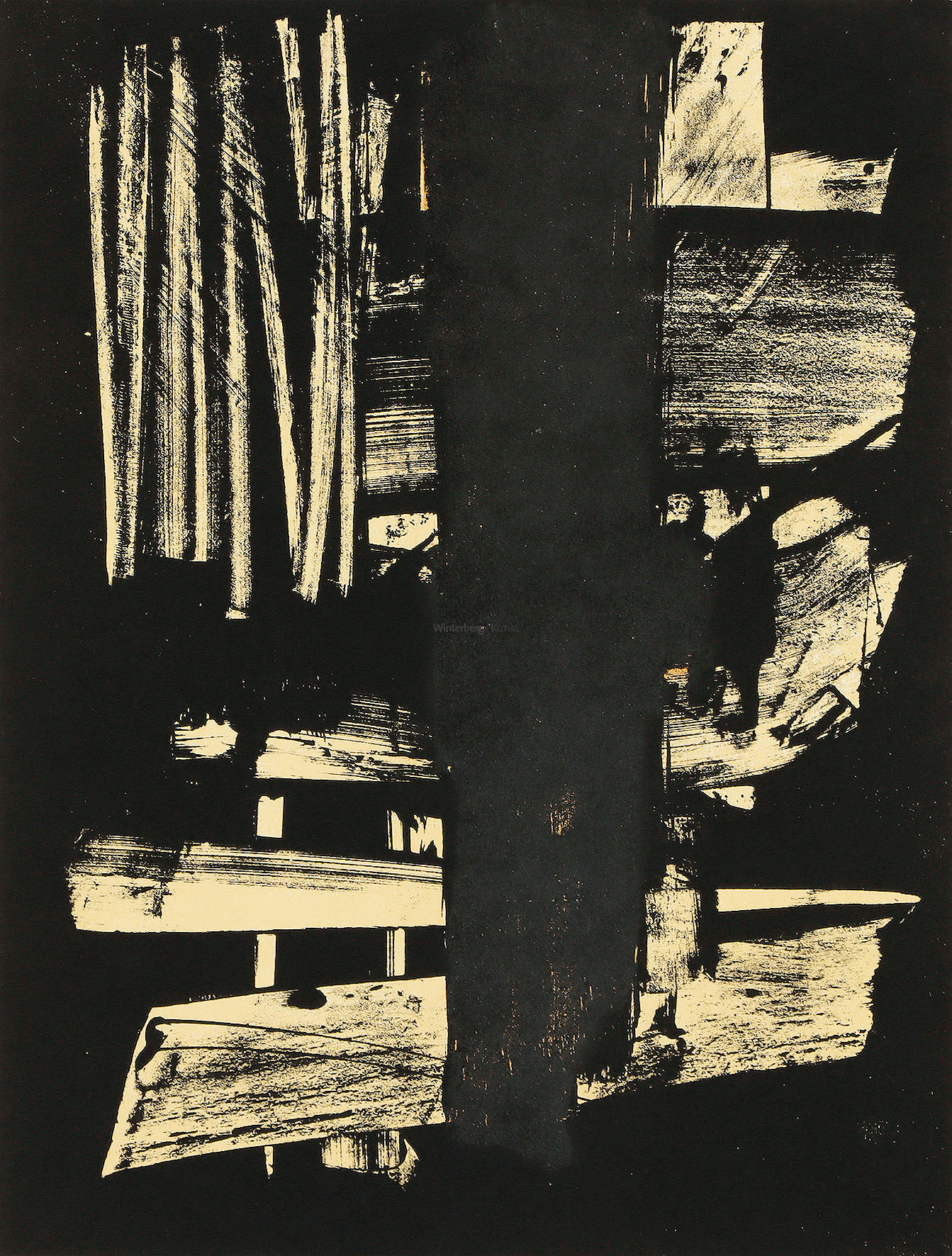 Compostion. Farb-Pochoir nach Soulages bei Atelier Daniel Jacomet 1956.