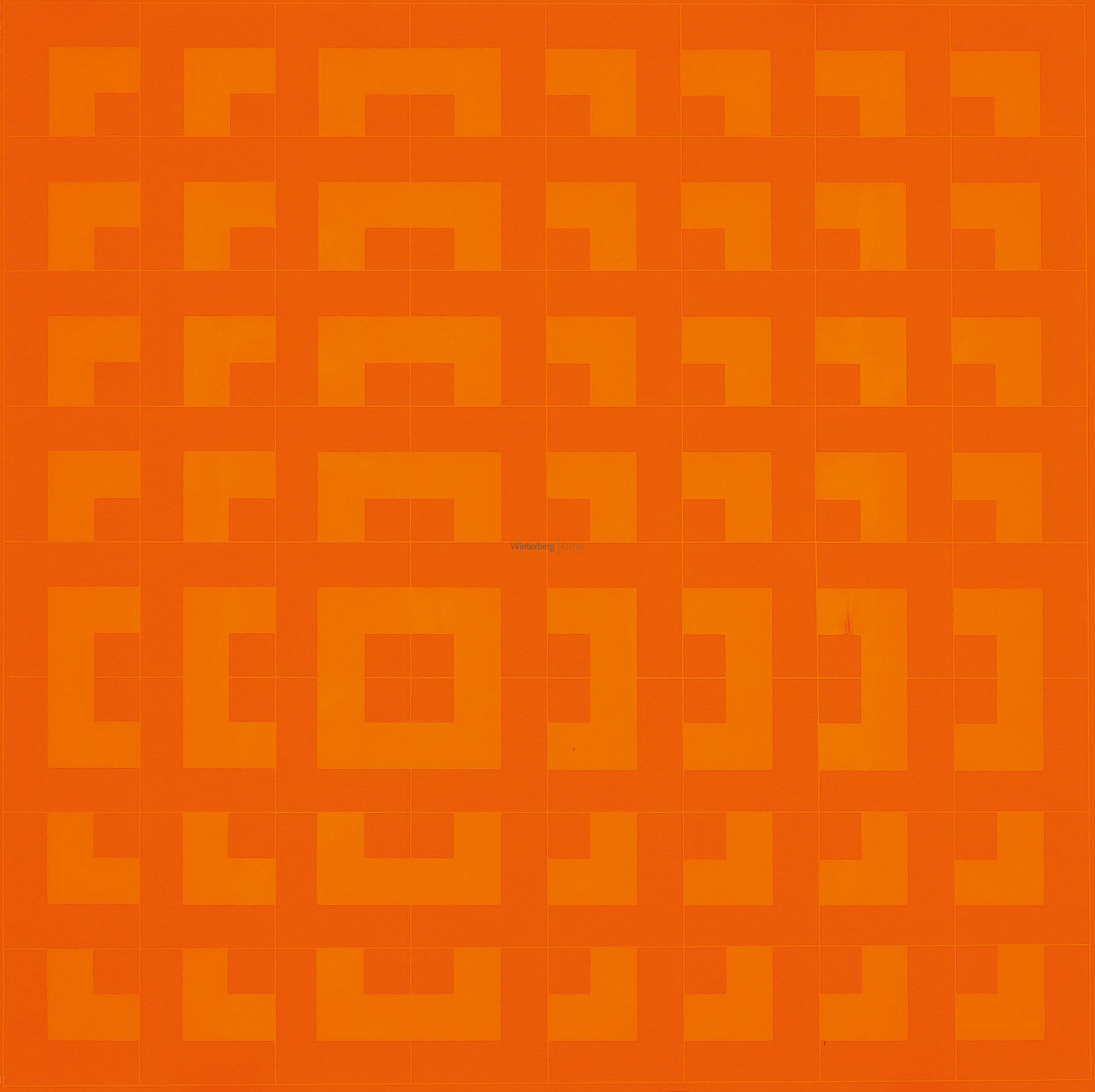 QV.-V. Geometrische Kompositionen über orange- bzw. rotem Grund. 3 Bll. Farbsérigraphien aus einer Folge von Quadratvariatoren 1971.