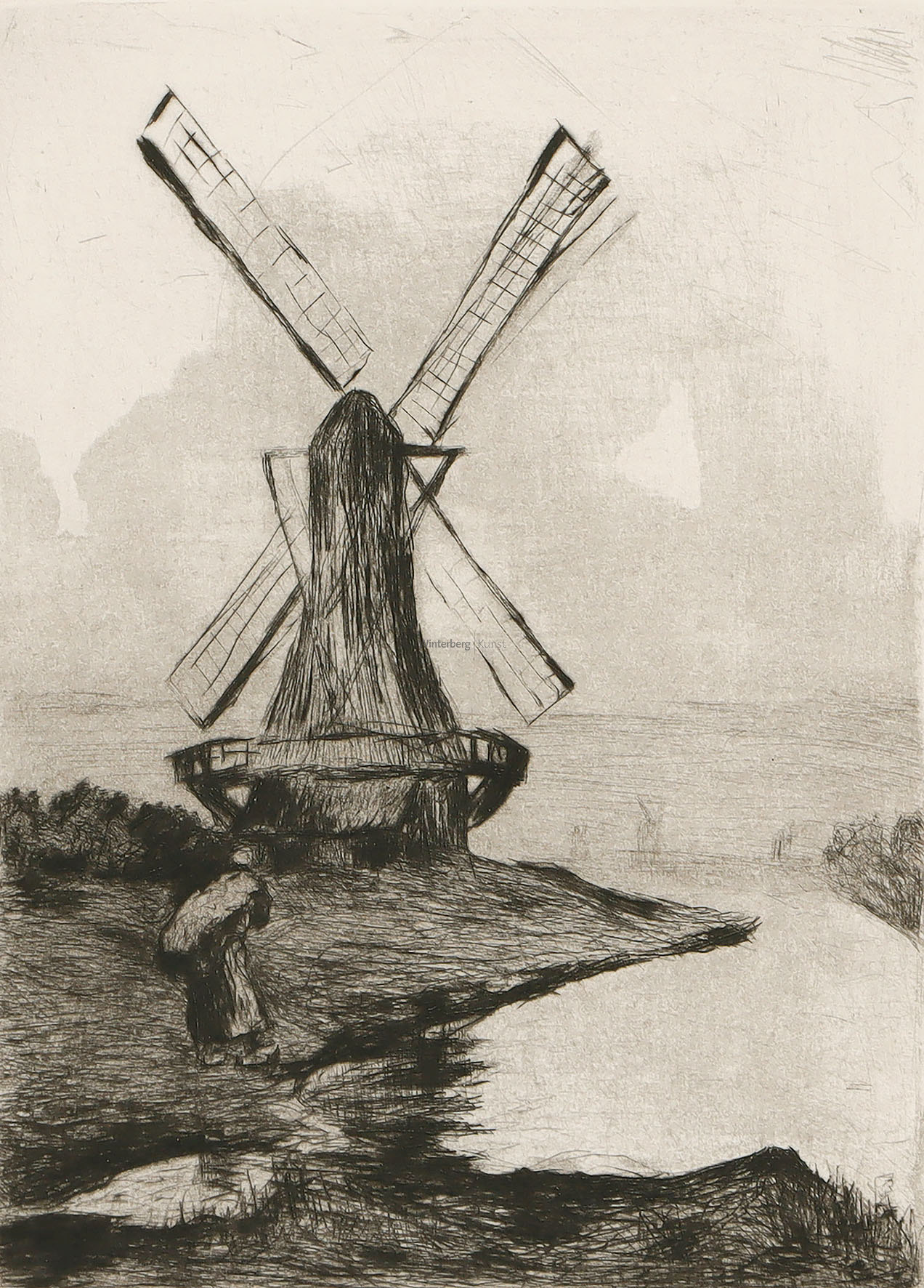 Holländische Mühle. Kaltnadelradierung mit Aquatinta 1919.