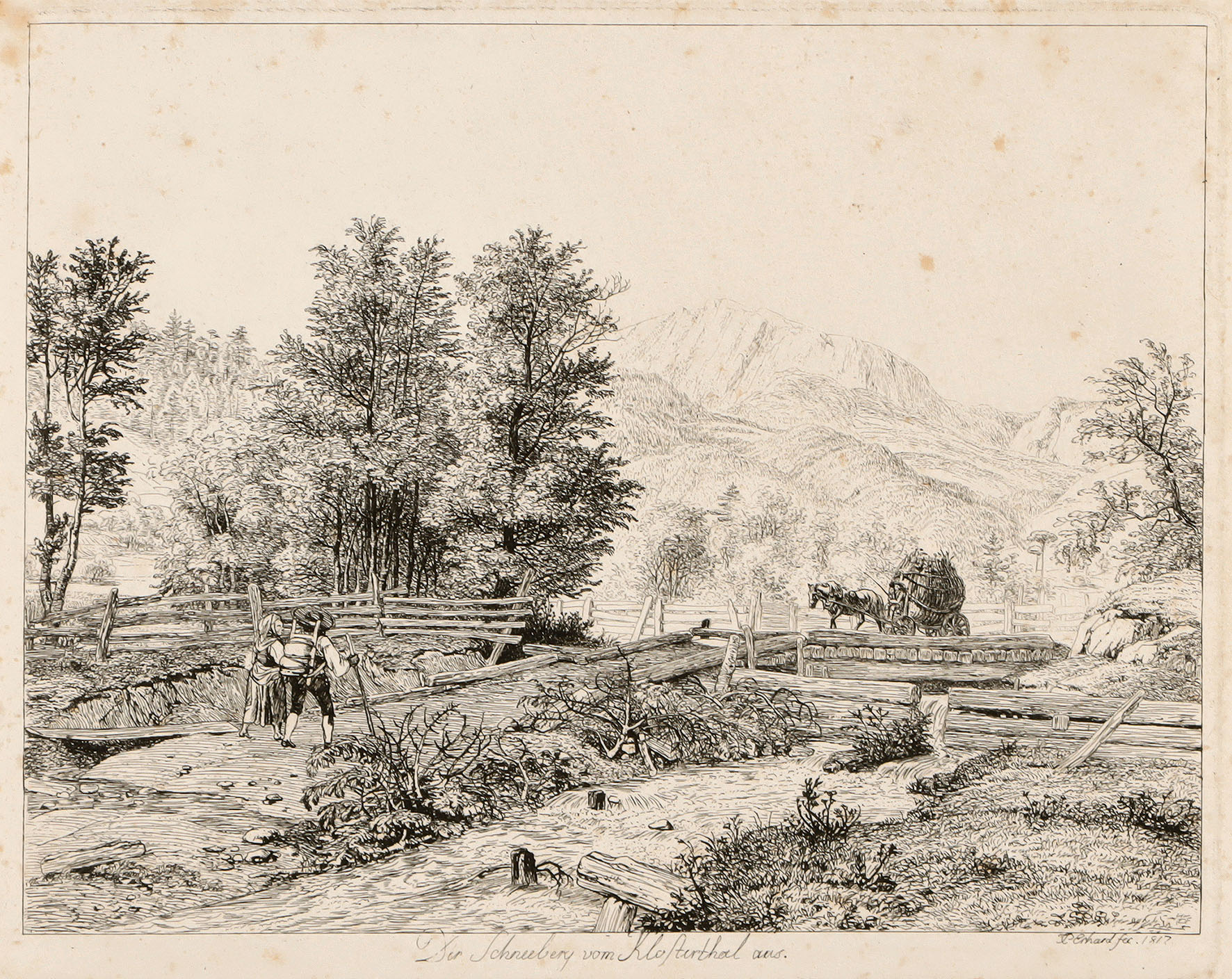 Der Schneeberg vom Klosterthal aus. Radierung aus der Folge von „Sechs Ansichten aus den Umgebungen des Schneeberges“ 1817.
