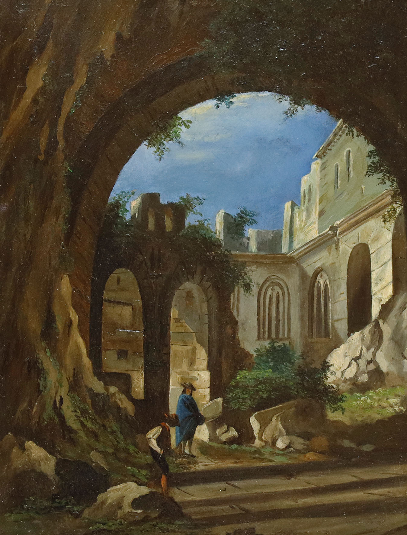 Klosterruine. Oel auf Zinkblech.