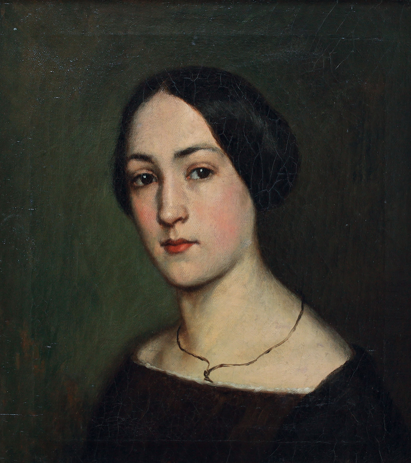 Amalie Fries, verheiratete Fesquet, Tochter von Ernst Fries. Brustbildnis der zweitältesten Künstlertochter mit Halsschmuck. Oel auf Leinwand um 1852.
